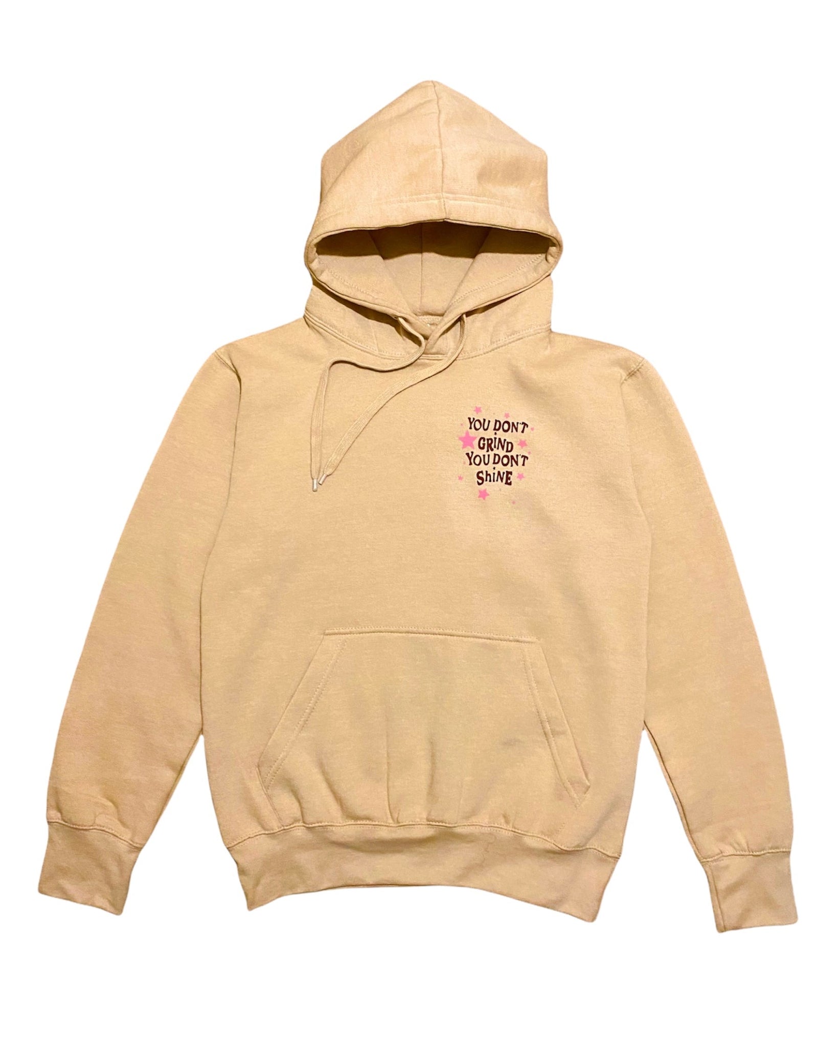 Tan Hoodie Featuring Brown Lettering With Pink Stars