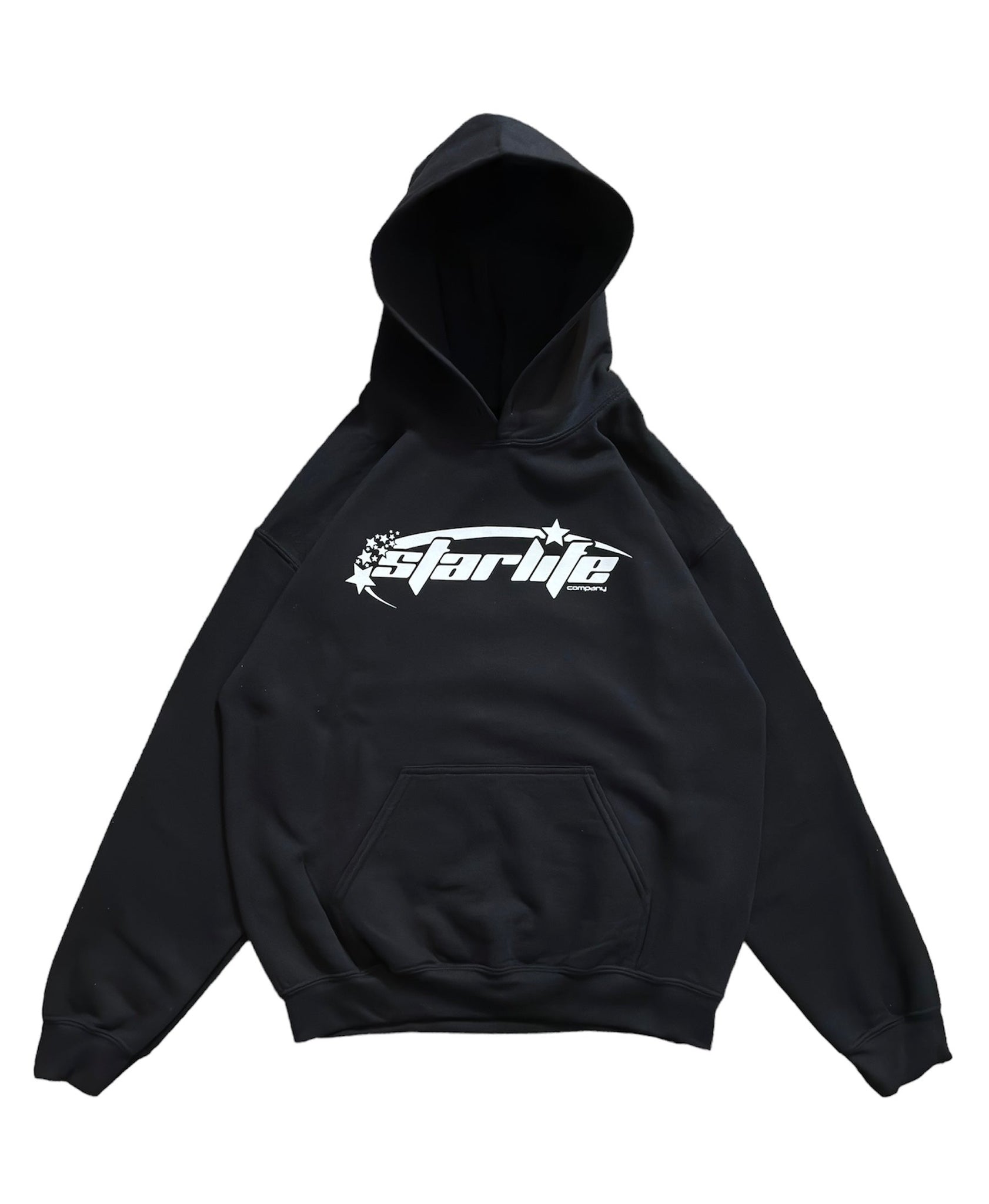 - Black Hoodie Featuring White Lettering Surrounded By Pink Stars