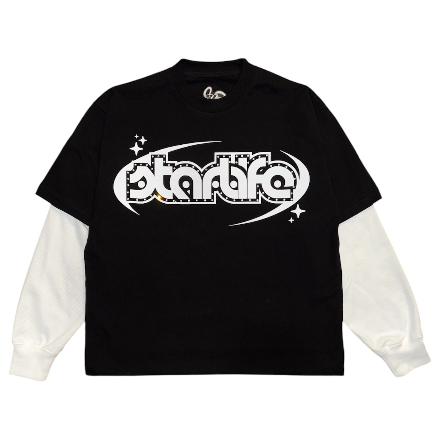 Jet Black Tee Featuring White Thermal Arm Sleeves